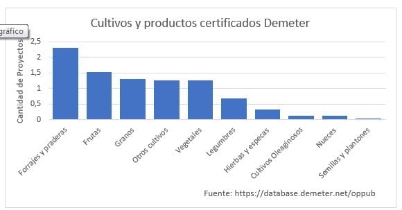 En el mundo existe un número importante de productores que han decidido certificar sus cultivos y productos bajo la normativa Demeter. Según los datos oficiales en la página de Demeter, existen más de 8997 proyectos certificados a nivel global. Los forrajes y praderas son los principales, seguidos por frutas, granos y hortalizas.