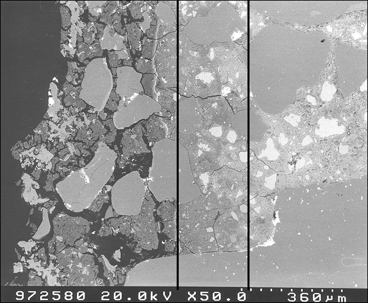 Figure: First and second damage front (SEM image on thin section).