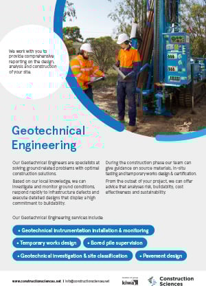 Kiwa’s geotechnical engineering team can assist from the design phase right through to project completion and maintenance.
