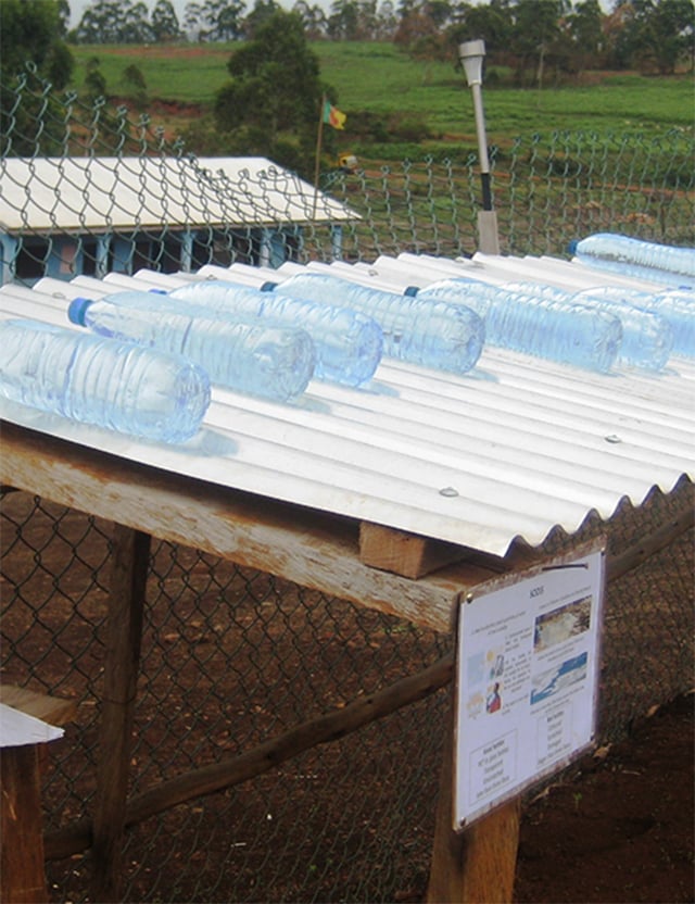 Den andra metoden, pastörisering, är lite mer avancerad. Här används en så kallad solugn som med solens strålar värmer upp vattnet till 65 grader, vilket dödar skadliga bakterier.